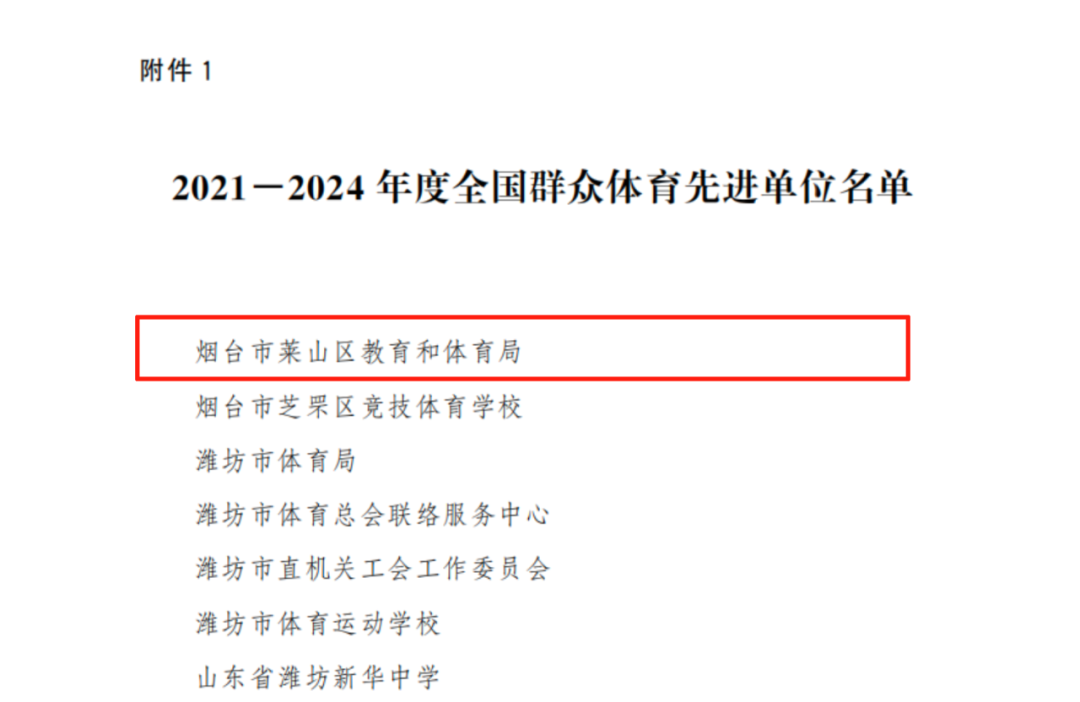 此次获评“全国群众体育先进单位”,是对莱山区群众体育工作的高度认可与有力鞭策。下一步,莱山区将以此为契机,持续深化体育惠民举措,进一步优化体育设施供给、丰富赛事活动内容、提升服务保障水平,推动群众体育事业再上新台阶,为建设现代化新莱山注入源源不断的体育活力!