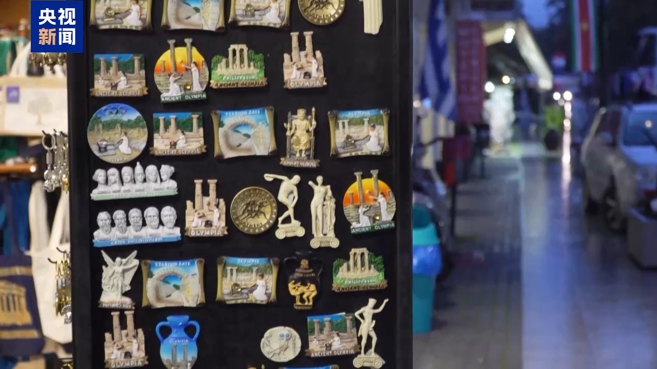 总台记者 杨明交:由于下雨,古奥林匹亚小镇显得有些冷清,但我们仍然能够在这里见到很多奥运元素,比如我身后这面奥运会会旗和国际奥委会各成员的旗帜。