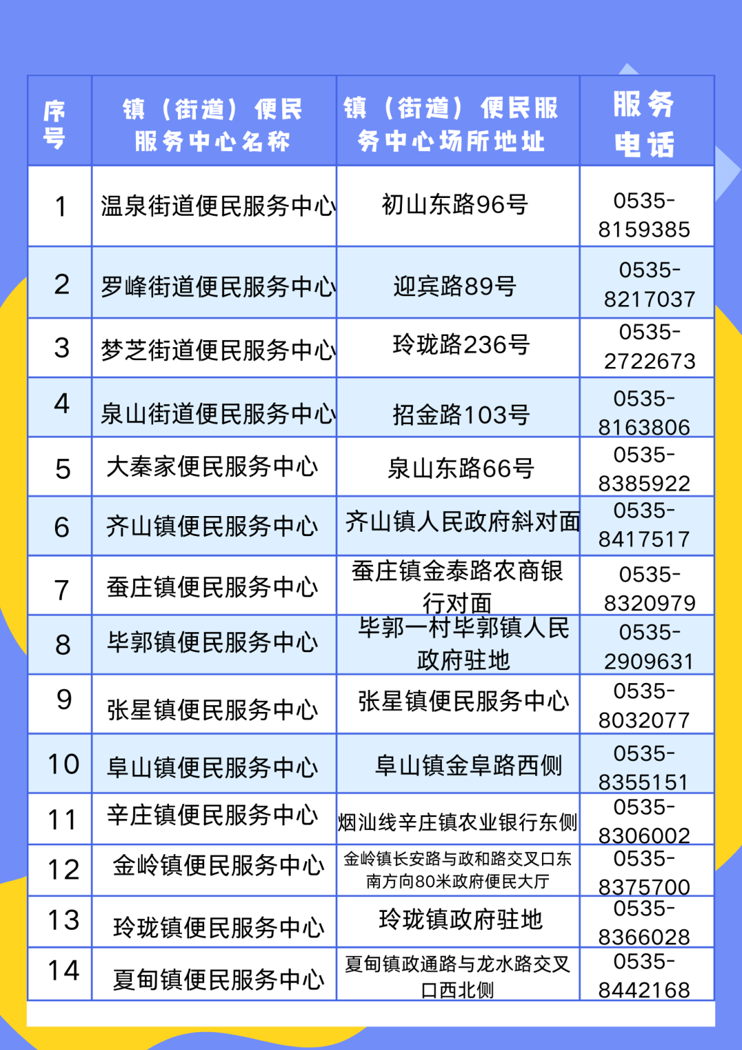 市民朋友可根据所在镇(街道)选择就近办理,各便民服务中心地址及服务电话如下: