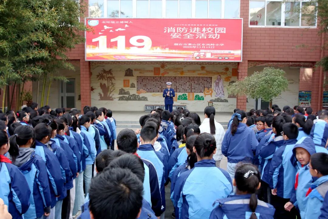 近日,莱山区消防救援大队消防宣讲团“化身”蓝焰护苗团,在“消防科普车进乡村小学”活动中,先后走进莱山区朱塂堡小学、冶头小学、官庄小学等8所乡村学校,为2000余名师生送去一堂生动的“消防安全课”。