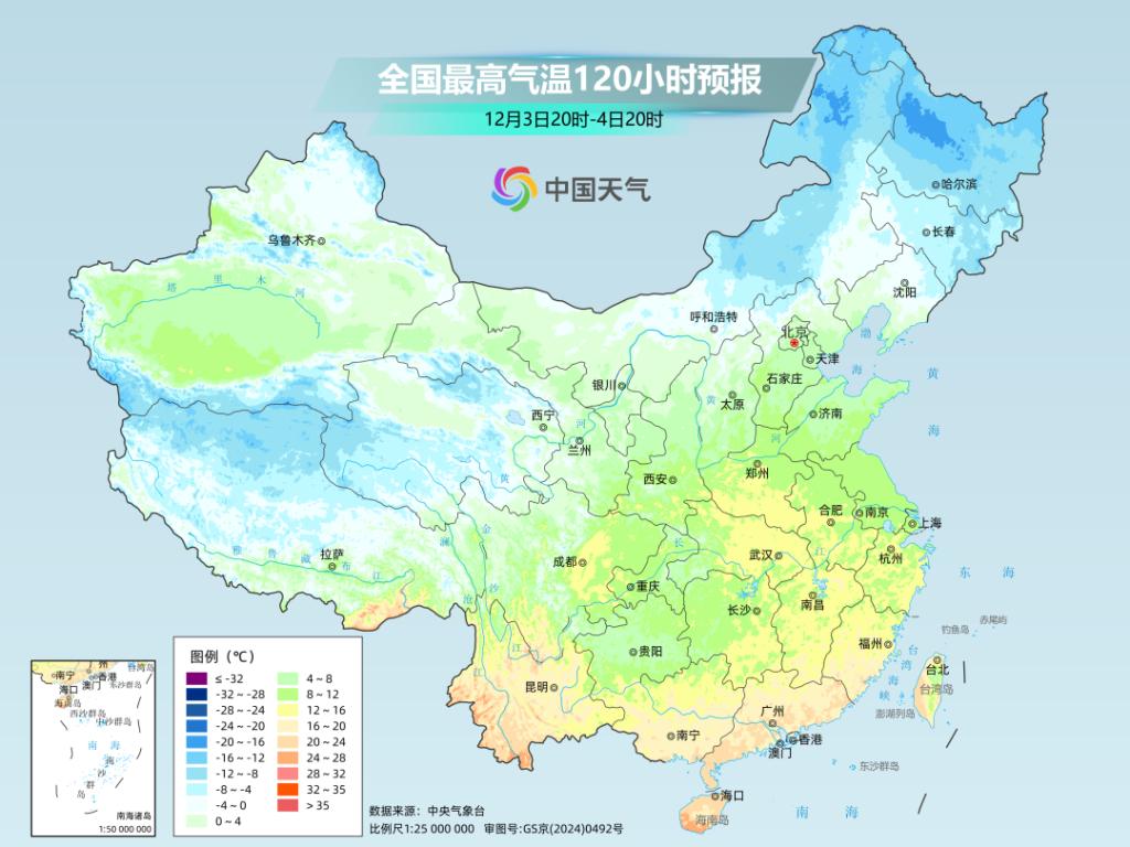 明后天,东北、西北、华北等地气温就会降至偏低状态;12月2日,黄淮一带气温降至偏低状态;12月3日,南方降至偏低水平。