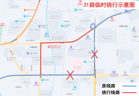 增加:只楚办事处、只楚路(冰轮路)(路南)、只楚集团(公交修理厂)、发电厂(胶东泌尿外科医院)站点。