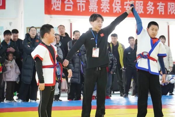 11月29日,烟台市第十五届全民健身运动会暨烟台市第五届中国式摔跤比赛在烟台参参堂海参文化展览馆举办。本次比赛由烟台市体育局、烟台市体育总会主办,烟台市摔跤柔道协会承办,吸引了来自全市各区市近百名运动员同台竞技,年龄跨度从7岁到36岁,以跤会友,展现中国式摔跤的独特魅力与全民健身的蓬勃活力。