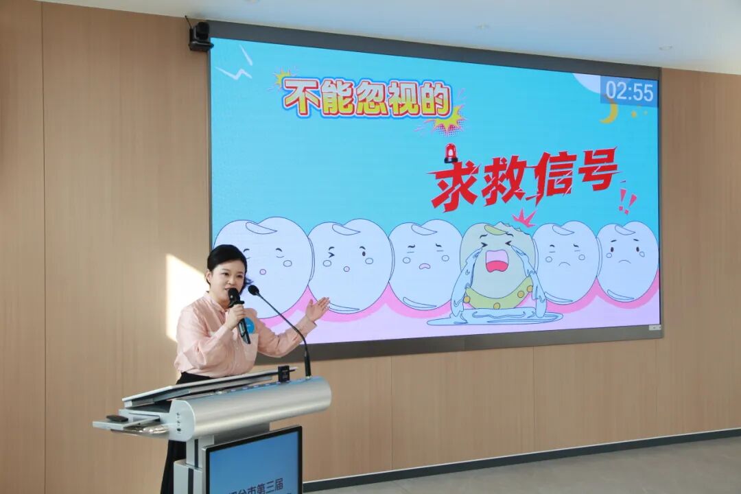 口腔医疗专业组与口腔健康教育组选手则以专业视角解读口腔健康密码。牟平区宁海街道中心小学教师赵洪通过邻居李大叔因牙周病诱发脑梗的真实案例,在《不能忽视的求救信号》中阐释口腔健康与全身健康的紧密关联,让专业知识变得通俗易懂;滨州医学院学生李子琪以《小白牙的城堡保卫战》为主题,用儿童化语言普及护牙常识;此外,《孩子换牙后门牙牙缝大,要不要矫正?》《牙齿有话说 牙结石的危害》等演讲,聚焦市民常见口腔困惑,展现了医疗从业者与教育工作者的科普担当。