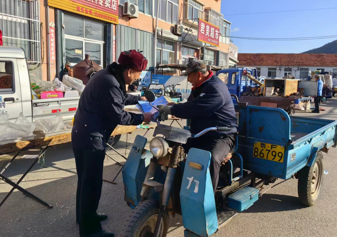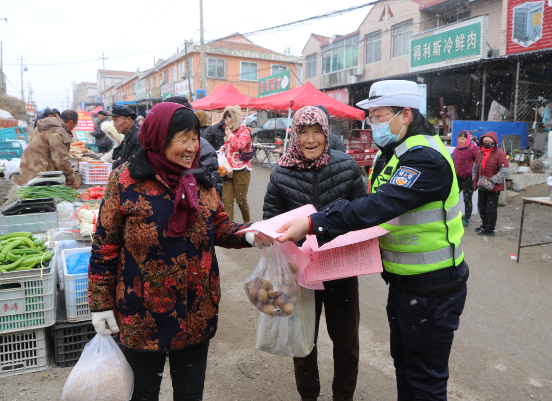烟台交警利用乡镇集市人流量大、覆盖面广的特点,宣传人员清晨奔赴各个集市。他们通过悬挂横幅、在摊点前发放宣传单页等方式,向农村群众重点讲解农用车载人、酒驾等常见违法行为的危害。用最接地气的方式,守护农村地区的平安之路。