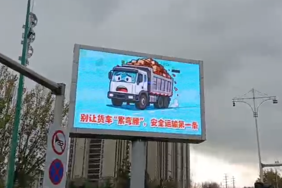 烟台交警利用人流密集区域、商场、出租车显示屏、高速公路沿线等地的LED显示屏,滚动播放主题宣传标语。一抹抹亮眼的色彩格外醒目,一句句诚挚的提醒旨在让每一位过往的群众都能“看见”安全,将交通法规牢记心间。