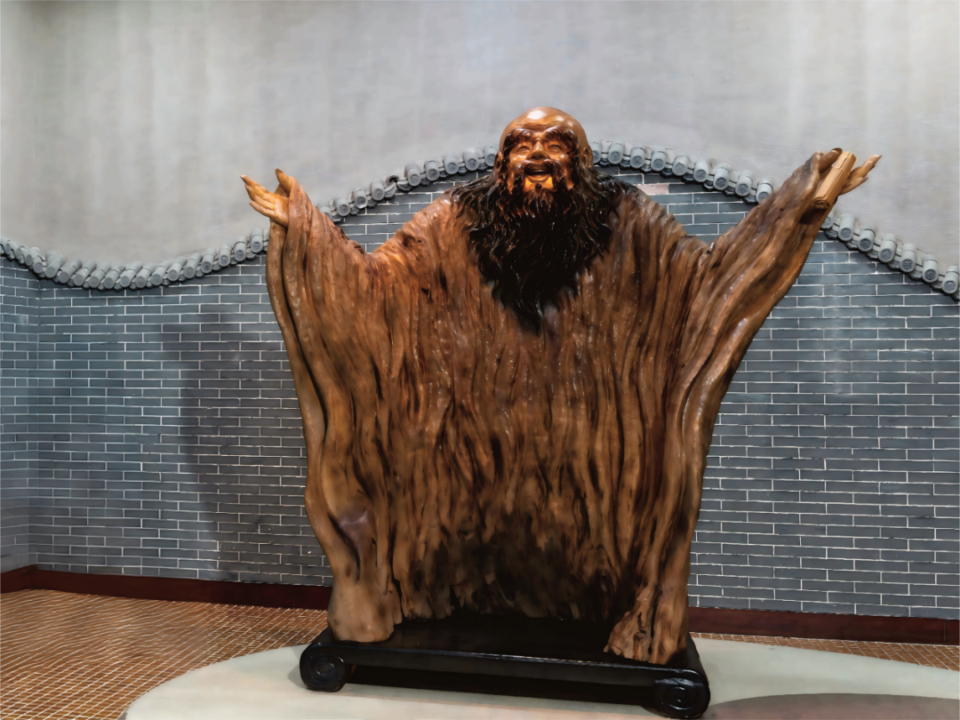 烟台自然博物馆馆藏“知足常乐” 香樟木雕 老子像