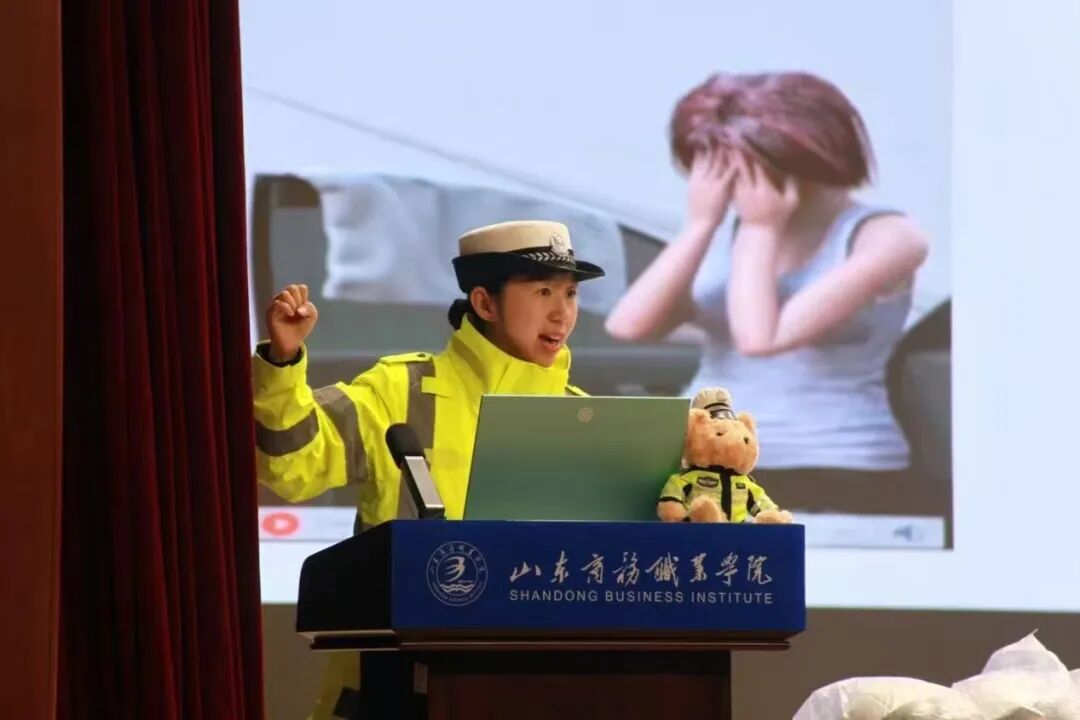 为切实提升高校学生道路交通安全意识与法治素养,12月1日,烟台市公安局交通管理支队高新区大队走进山东商务学院,开展了一场针对性强、内容翔实、互动深入的交通安全主题宣讲活动。本次活动旨在将交通安全教育与职业素养培育相结合,为即将步入社会的学子们提前系好交通出行“安全带”。