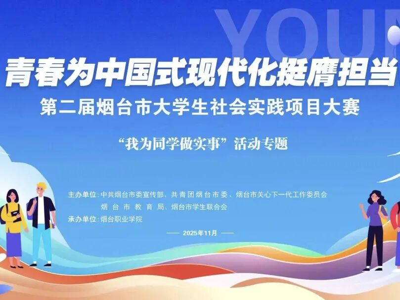 近日,第二届烟台市大学生社会实践项目大赛颁奖仪式暨成果展示活动在烟台职业学院举办。烟台市关工委副主任李明、学校党委副书记鞠洪海,烟台市教育装备与技术研究中心书记于庆琪,共青团烟台市委副书记汪振杰、王丹怡,烟台市委宣传部四级调研员冯学友出席,19所驻烟高校、市属学校及部分区市团委负责同志、烟台职业学院师生代表参加。