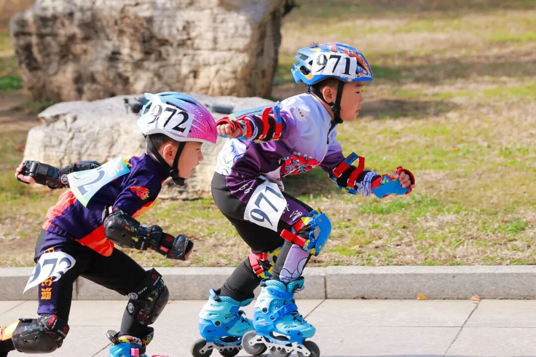 本次锦标赛作为省级顶级轮滑赛事,设置了百米飞人大战、1000米计时赛、10000米积分赛等多个竞技项目,同时开设休闲组别满足不同群体需求。赛场上,随着发令枪响,招远选手如离弦之箭般冲出起跑线,蹬地、滑行、超越一气呵成,脚上的轮滑鞋化作“风火轮”,在赛道上划出灵动轨迹。面对强劲对手,他们沉着冷静、稳健发挥,时而全力冲刺抢占先机,时而默契配合突破重围,展现出扎实的技术功底和坚韧的拼搏精神,赛道两旁的加油助威声此起彼伏,为这场速度较量增添了浓厚氛围。