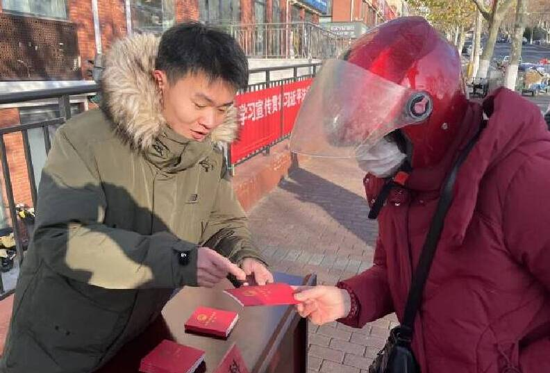 上午9点,区工委政法委、区大数据服务中心在步行街启动“12·4国家宪法日”宣传咨询活动。普法工作人员不仅向过往群众和沿街商户发放《中华人民共和国宪法》手册、《山东省长岛海洋生态保护条例》等法治宣传资料,还化身“宪法讲解员”用通俗易懂的语言向过往群众解读宪法知识,拉近宪法与日常生活的距离。