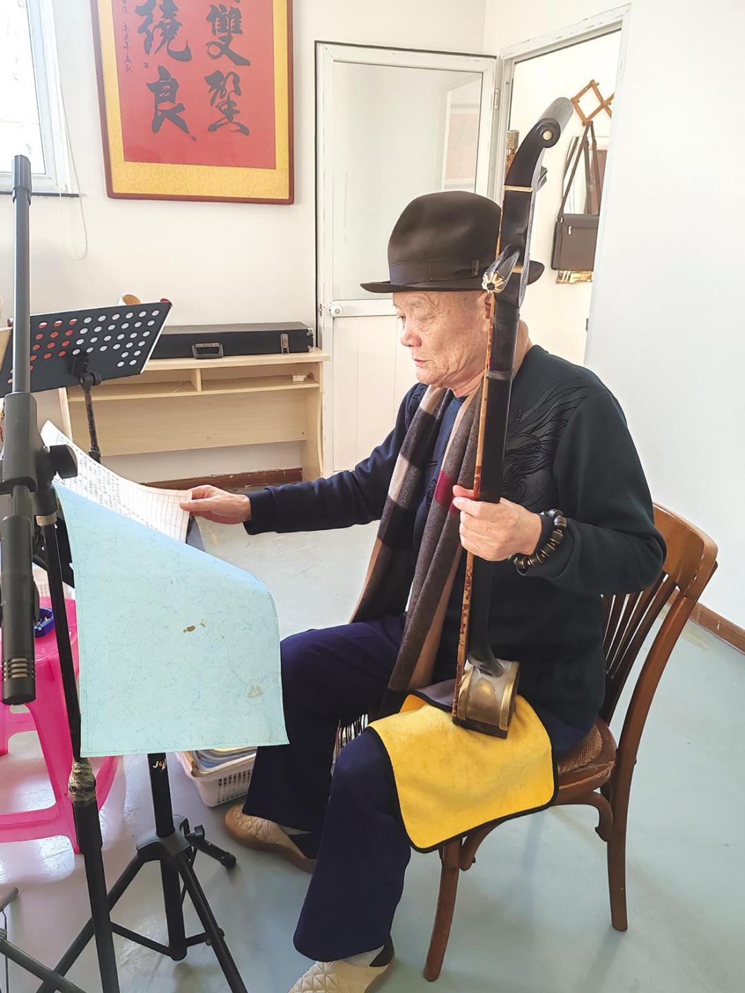 “独乐乐不如众乐乐,吕剧艺术需要更多人的参与和传承。”随着技艺的日益精湛,他心中萌生了搭建平台、推广吕剧艺术的想法。于是,他个人出资,邀请部分专业演员和民间吕剧爱好者,在芝罘区东方文化市场成立了吕剧社。如今,吕剧社已有40多名社员,包含了不同年龄段和职业的吕剧爱好者。为了提高社员的演唱和演奏水平,他特意邀请专业老师定期指导,每周三、周六的下午,排练厅里总是萦绕着悠扬的吕剧旋律。“大家都是因为热爱吕剧走到一起的,在这里,我们相互学习、相互交流,共同进步。”