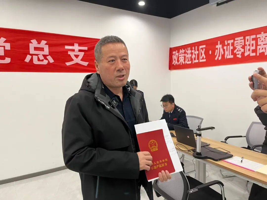 刚在活动现场领到崭新不动产权证书的刘大哥很开心:“从交材料到拿到证,我都没用专门往政务服务大厅跑,税也是在社区这里交的,确实方便了不少。”
