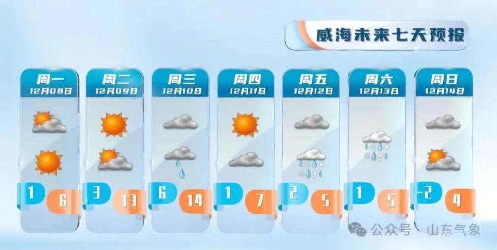 14日(周日),半岛地区天气阴局部有小雪转多云,其他地区天气晴间多云。半岛地区北风4~5级阵风6~7级转南风3~4级,其他地区北风转南风3~4级。