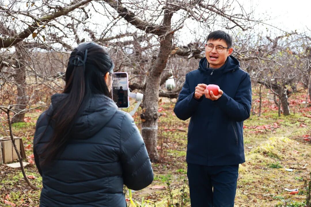 “家人们看,这就是我们仙人埠的红富士,日照足、糖分高,咬一口脆甜多汁……”