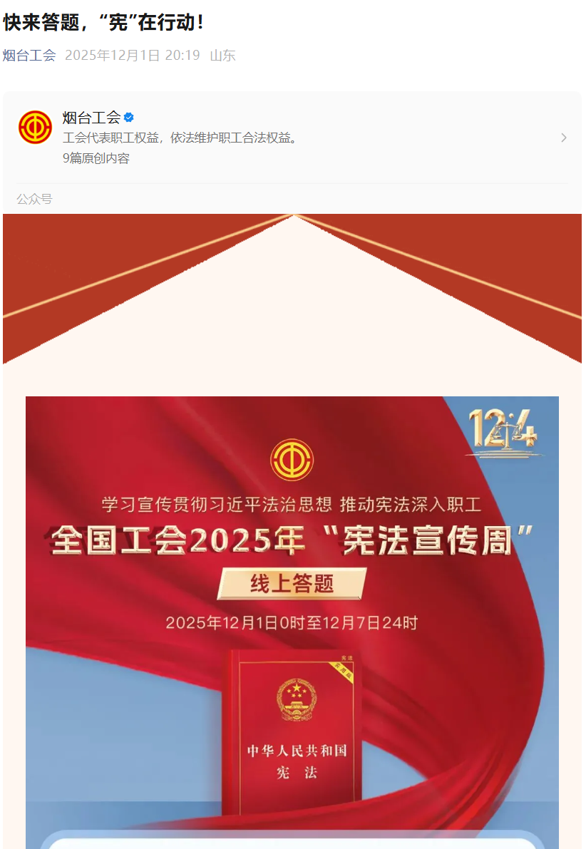 下一步,烟台市总工会将持续聚焦职工群众需求,创新宣传形式,推动宪法宣传常态化、制度化,为维护职工合法权益、构建和谐劳动关系贡献工会力量。