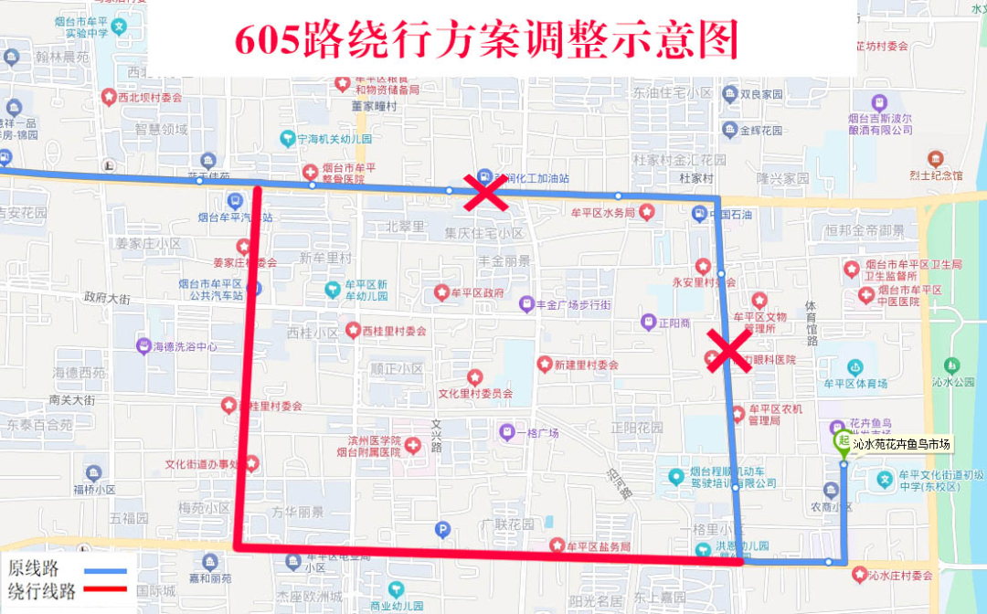 取消:牟平文化一中、东银陶瓷、宁海街道办事处、芝麻城、牟平整骨医院站点。