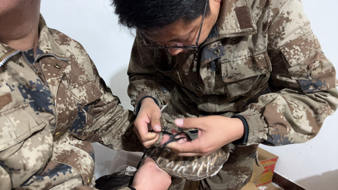 保护区工作人员为猛禽安装卫星跟踪器△