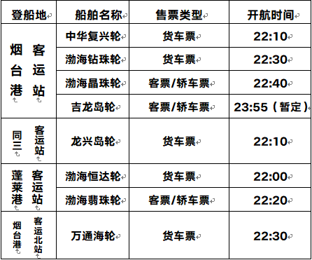 实际班期会根据气象情况进行调整,具体开航时间以海事放行时间为准,咨询电话0535-6506666。