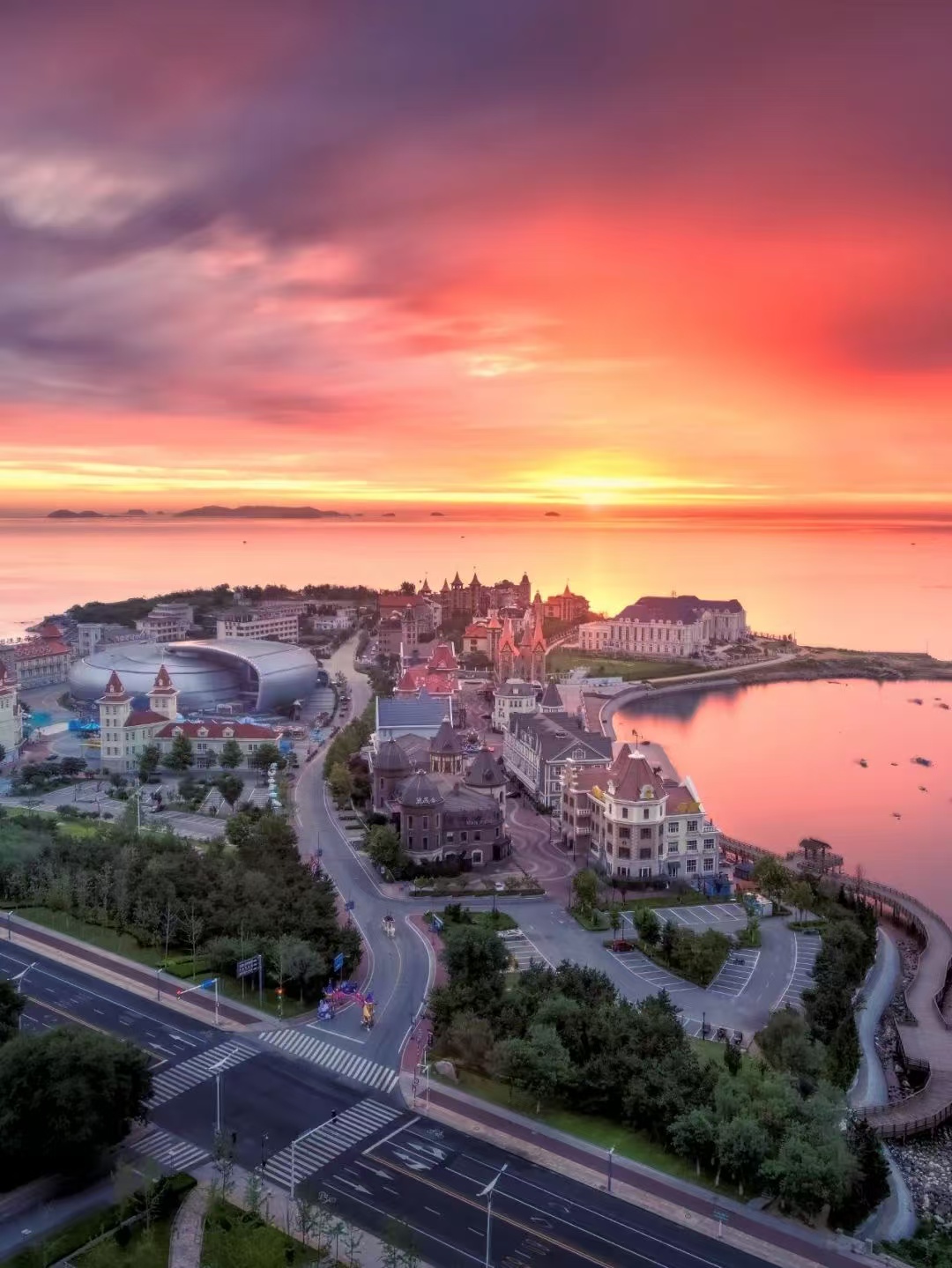 欧式建筑与海上日出的碰撞,让浪漫指数直线上升。鲸鲨馆旁的沿海木栈道,日出时分在这里散步,回望渔人码头建筑物全景,阳光为欧式建筑镶上金边,完美展现现代浪漫与自然奇观的结合。