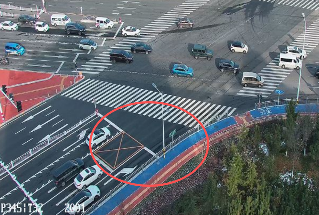 ②交叉口次外侧及左侧临近进口道(第三、四车道)停止线后移+醒目黄色网状线,通过扩大右转车辆与左侧非机动车、行人之间的相互观察条件,消除了视觉盲区,从空间上保障了路口通行安全。