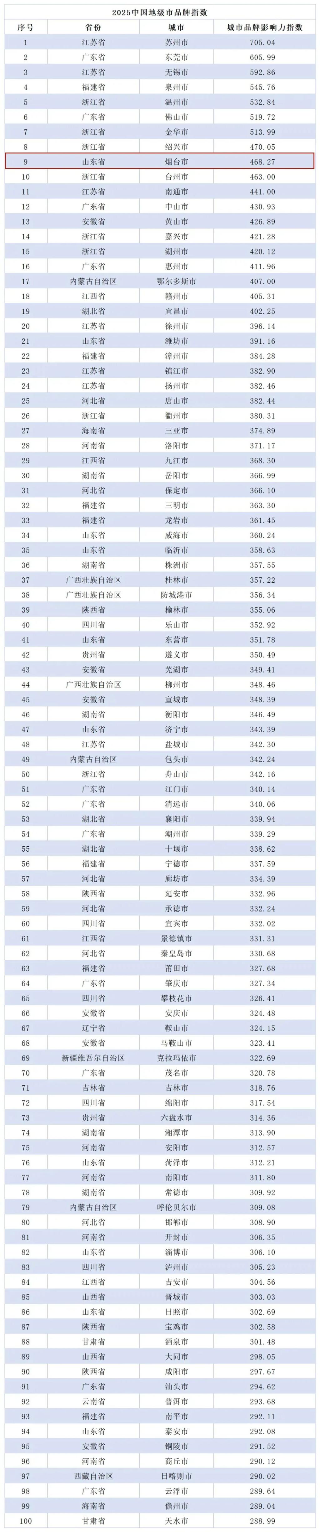 12月6日,2025城市品牌论坛在人民日报社举行,国家相关部委领导、地方主管部门代表以及来自高校、研究机构的专家学者等出席会议。会上发布了2025全国地级市城市品牌指数(不含省会以上城市)前100名城市名单,为各城市高质量发展树立鲜明导向。