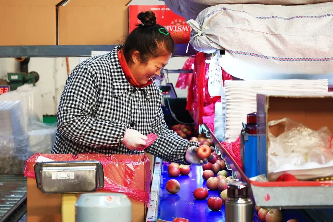 有村民说:“现在苹果一年四季都能卖,心里特别有底。不用急着在秋天卖完,可以把最好的苹果放进冷库,等到元旦、春节前后拿出来卖,价格能比平时高很多。”