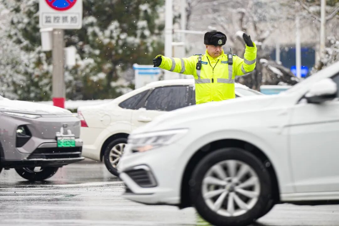 雪落无声,坚守有力。烟台交警以雪为令、逆雪而行,用荧光绿筑起雪中最温暖的“平安路标”,守护着每一位群众的出行平安。