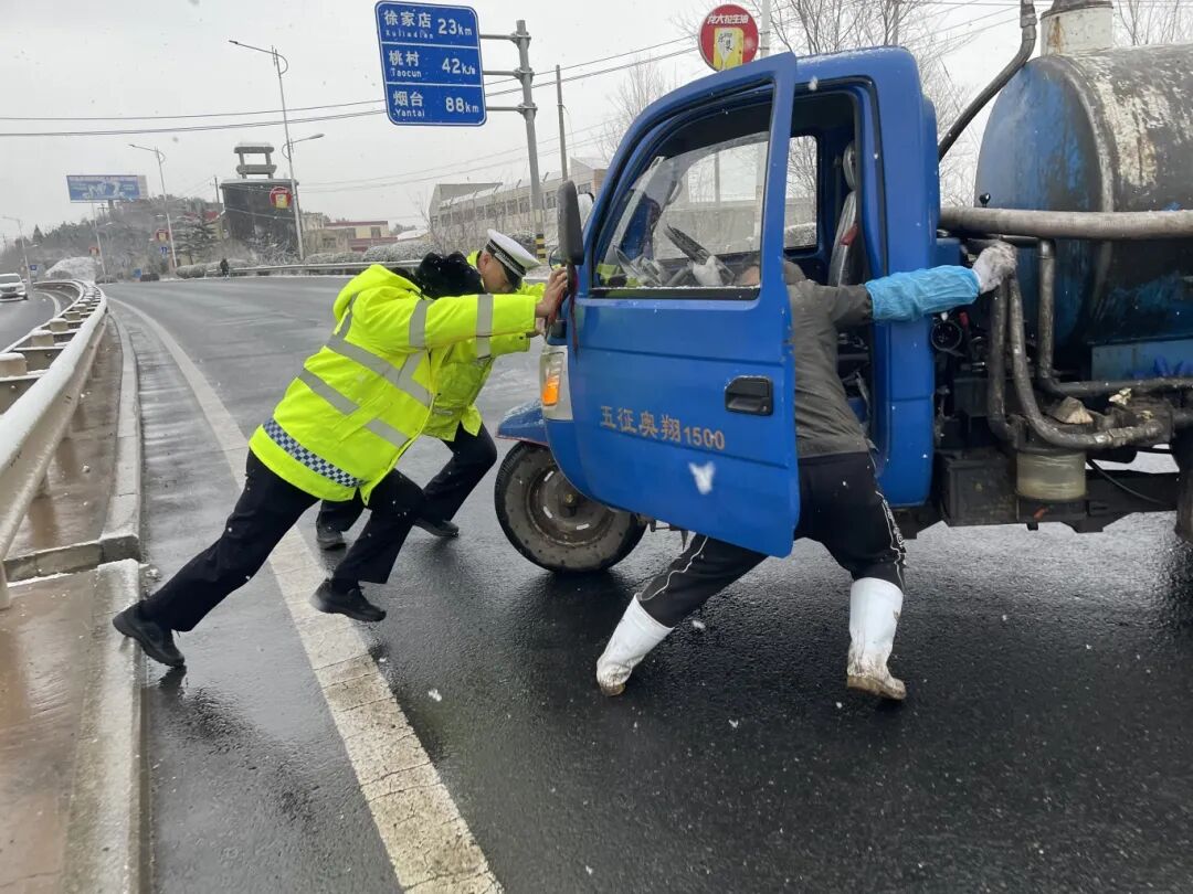 同时,各勤务中队重点加大对易结冰路段、积雪路段、急弯陡坡等危险区域的巡查力度,提醒过往车辆减速慢行、谨慎驾驶。在部分坡度较大路段及急弯路口,根据路况适时采取临时交通管制措施,快速处置各类突发状况,切实筑牢道路交通安全屏障。