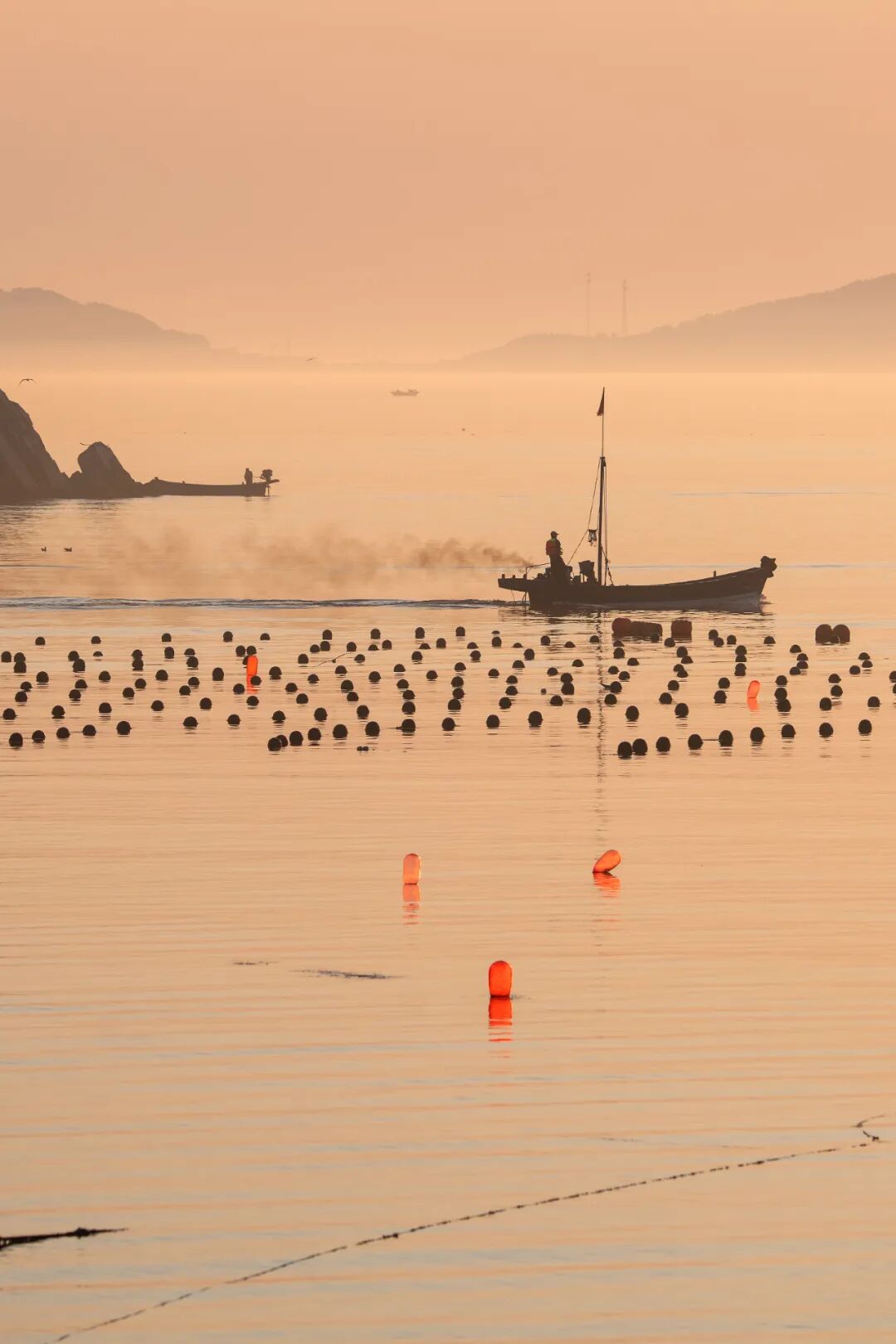 到访长岛次日,黎明前我们就赶到海边等待日出。想不到天虽不亮,却“更有早行人”。很多船停泊在岸边,出海的人已经在做各种准备。在岸边,我们遇到几位陆续赶来干活的妇女。她们到海边“夹苗”,把生蚝苗附着在扇贝壳上,再把扇贝壳夹到编织绳上,然后放回近海处。两位妇女麻利地夹苗填附,满一条绳子才给7角钱,她们还是干得认真仔细。即使和我们谈话,也不耽误手里的活儿。