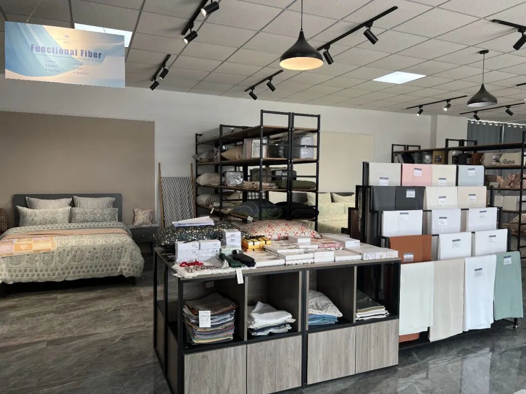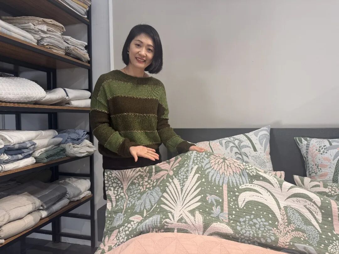 “这上面的图案是棕榈树,是澳洲传统花型。它有刺绣哑光质感,这款新款源自客户的一个想法,他发现一餐盘上的花型当地人非常喜欢,我们的设计师得到反馈后,从理念到形成到产品打入澳洲市场,仅用一个月的时间。”源自然副总经理杜晓颖介绍,今年订单呈上升趋势,相比去年增加了50%。主要是企业深度对接新增客户,深挖老客户需求,用创新和诚信拥抱国际市场。