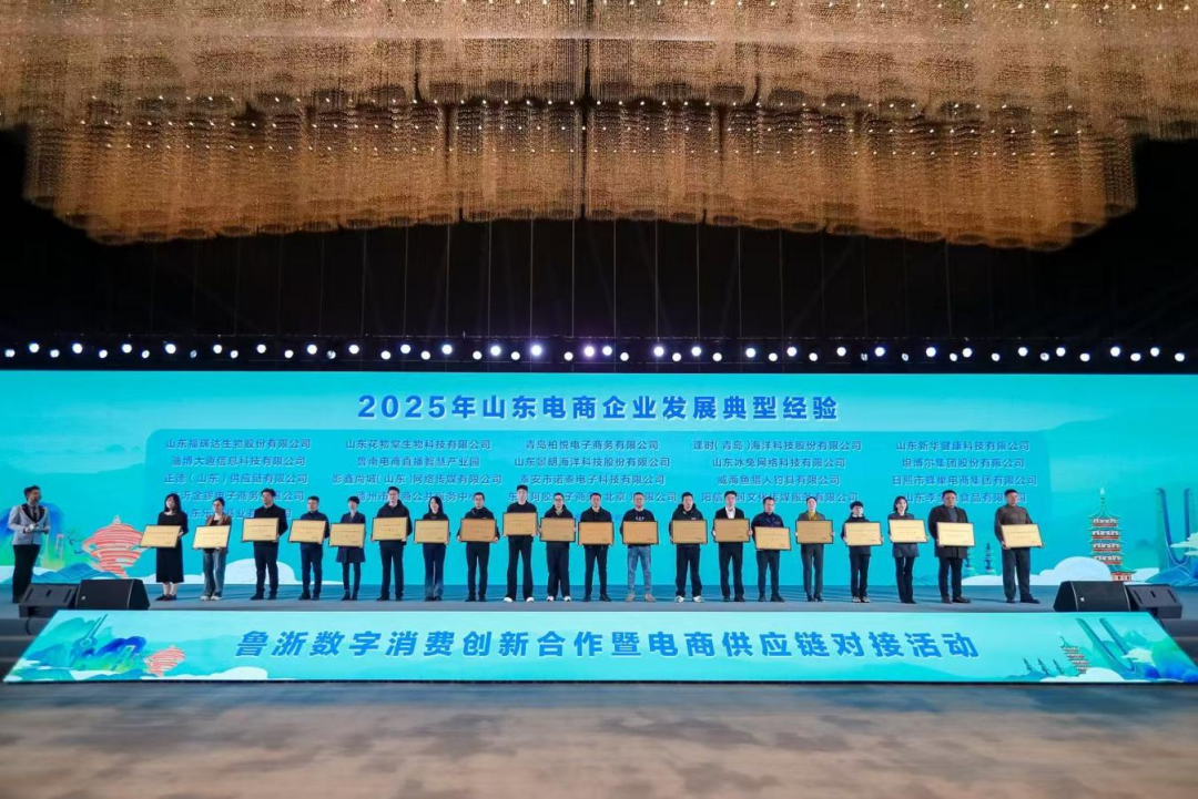 活动期间,山东省商务厅隆重颁发了“2025年山东电商企业发展典型经验奖”,海阳市山东冰兔网络科技有限公司凭借在数字助农、直播电商领域的突出表现成功获此殊荣,成为全省电商企业高质量发展的标杆。