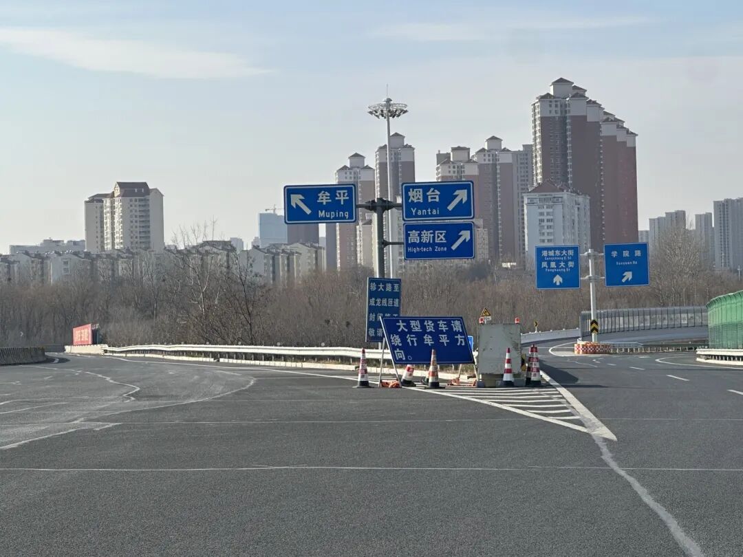 出烟台收费站左拐通往牟平方向,直行通往港城东大街、凤凰大街方向,右拐通往学院路方向。