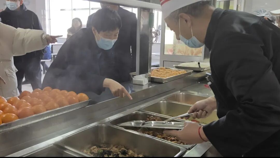 在烟台二中莱山校区食堂,检查组深入后厨对食材溯源、餐具消毒、食品留样等关键环节进行核查,并现场回应各界代表关切的问题。午餐时段,检查组成员与学生们“同菜同价”共进午餐,亲身体验菜品质量与卫生状况。家长代表感慨:“亲眼看到后厨规范、饭菜可口,心里踏实多了。”