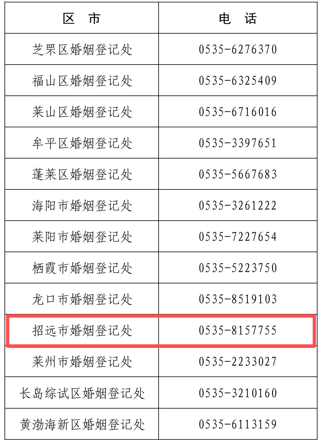 各区市婚姻登记处电话