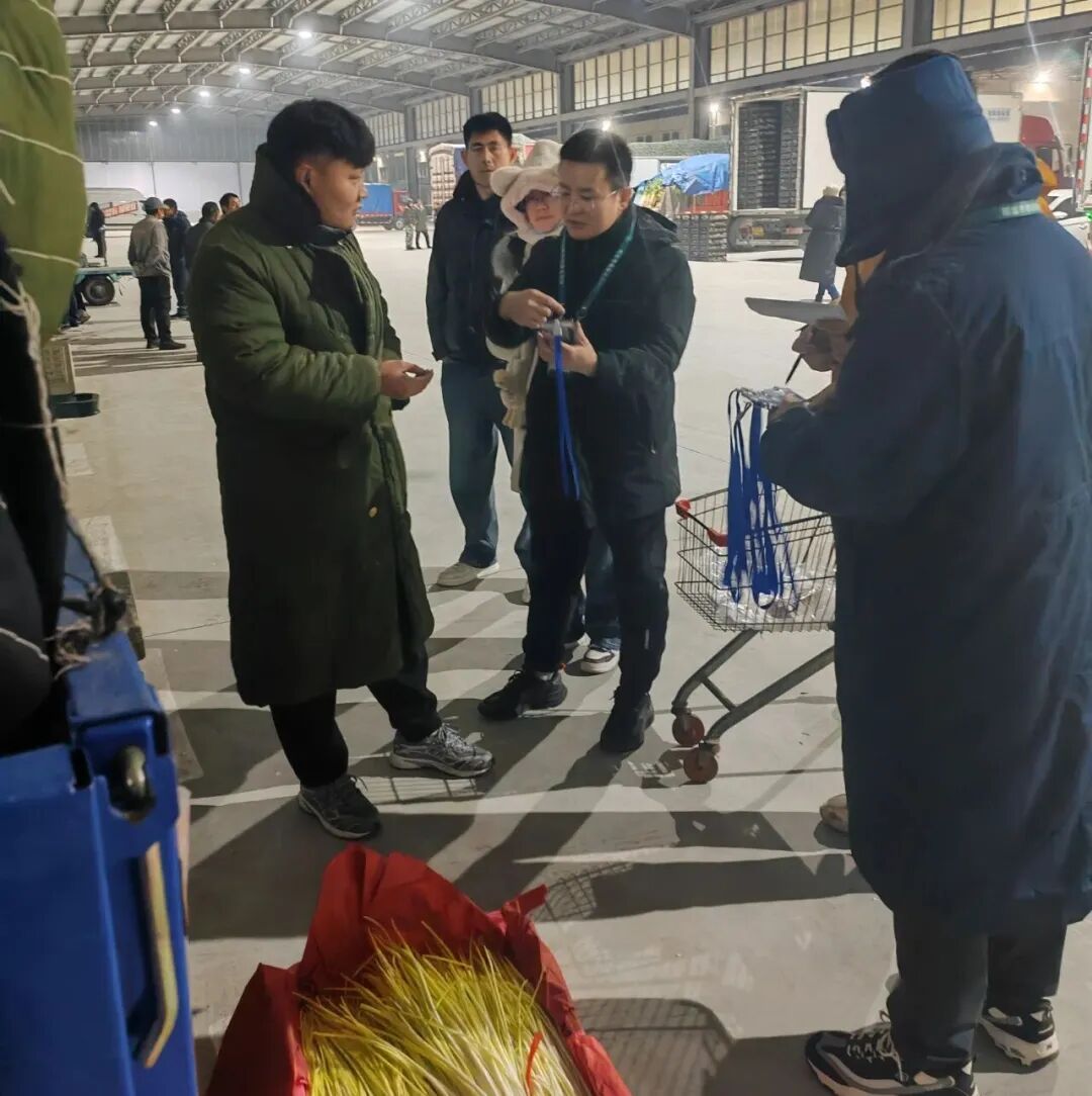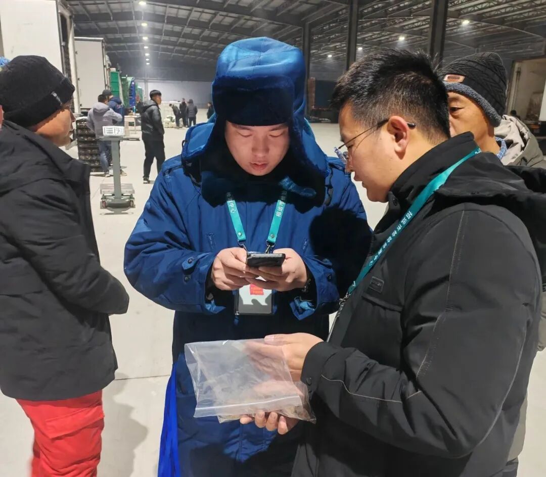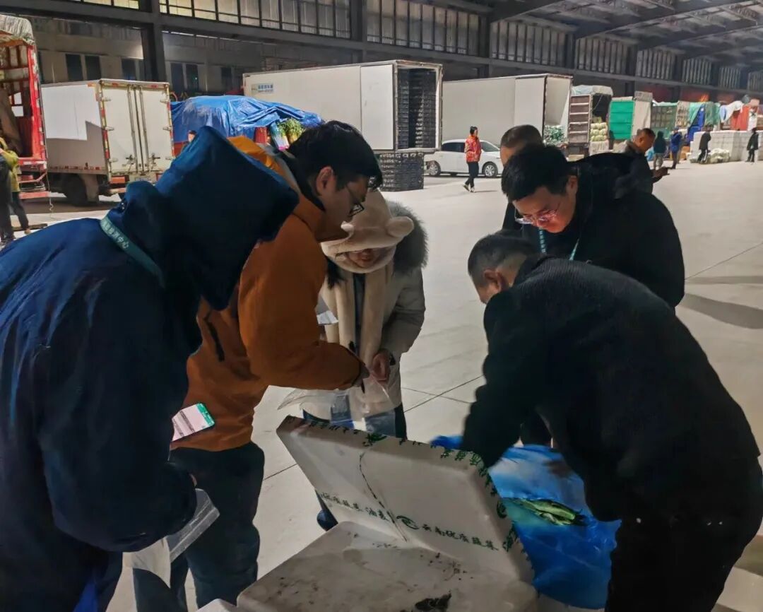 早在交易大厅筹备阶段,中心将保障工作列为重点民生任务,精选党员、青年干部骨干组建18人快检应急保障队伍,围绕农药残留快检、设备操作等开展专项培训,实现“全员持证上岗、全程规范操作”;同时完成快检设备安装调试,推进一级批发商“一品一码”赋码工作,实现检测信息实时上传、溯源链条全程贯通,为农产品质量安全追溯奠定坚实基础。