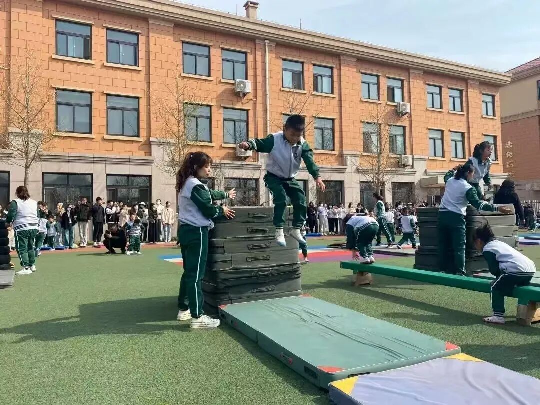“小皮球,架脚踢,马兰开花二十一……”伴着熟悉的歌谣,孩子们在皮筋间灵活起落;废旧轮胎垒成的“小山”前,一个个轻盈的身影接连跃起,轻松跨越这些创意十足的障碍物;在前滚翻、匍匐前进、平衡挑战等项目中,孩子们身手矫健、活力满格。