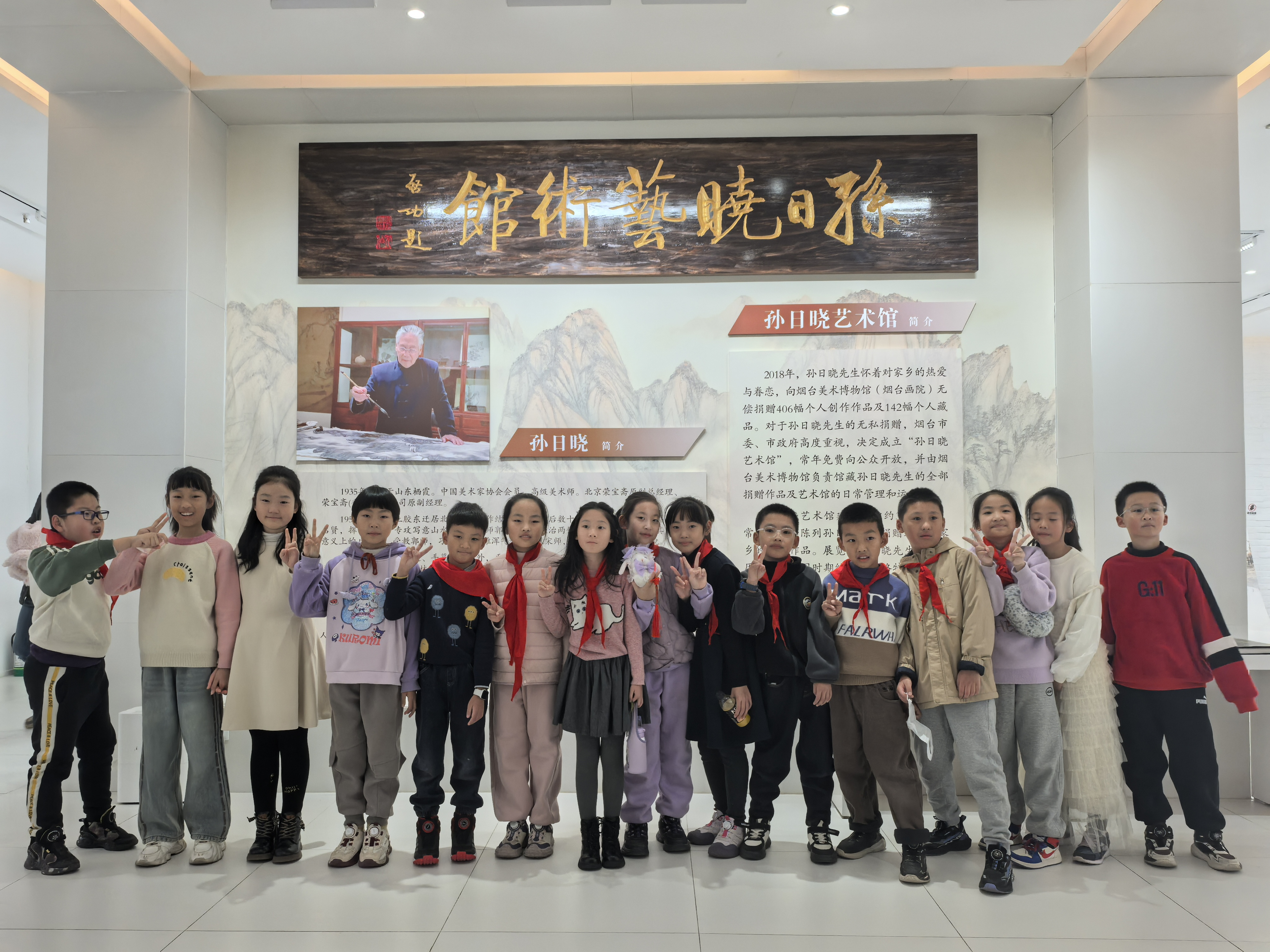 在油画展区,学生们细致地观察每一幅画作,不时相互交流。随后,大家来到“孙日晓艺术馆”展区,认真聆听讲解员介绍作品,了解本土艺术家的创作历程。