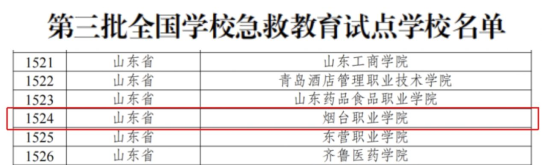 近日,教育部公布第三批“全国学校急救教育试点学校”名单,经省教育厅推荐、教育部复核,烟台职业学院凭借坚实的安全应急工作基础和完善的健康教育体系,入选第三批全国急救教育试点院校。