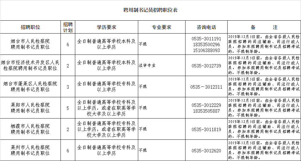 受烟台市人民检察院委托,为烟台市检察机关招聘聘用制书记员24名。现将有关事项公告如下: