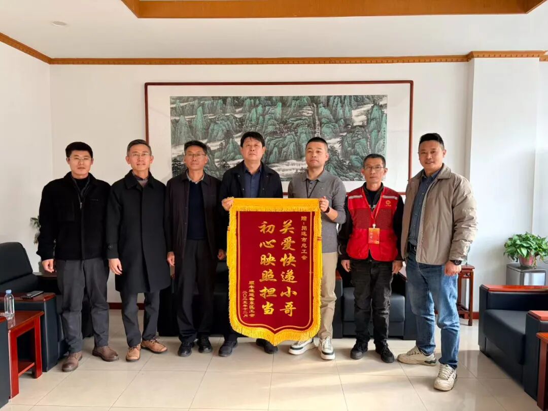 近日,招远市总工会迎来了一份特殊的“快递”,一面来自顺丰速运招远网点的红底金边锦旗,上面“关爱快递小哥 初心映照担当”十二个大字熠熠生辉。这不仅仅是一份感谢,更是快递员等新就业形态劳动者对“娘家人”贴心服务最真挚的认可。