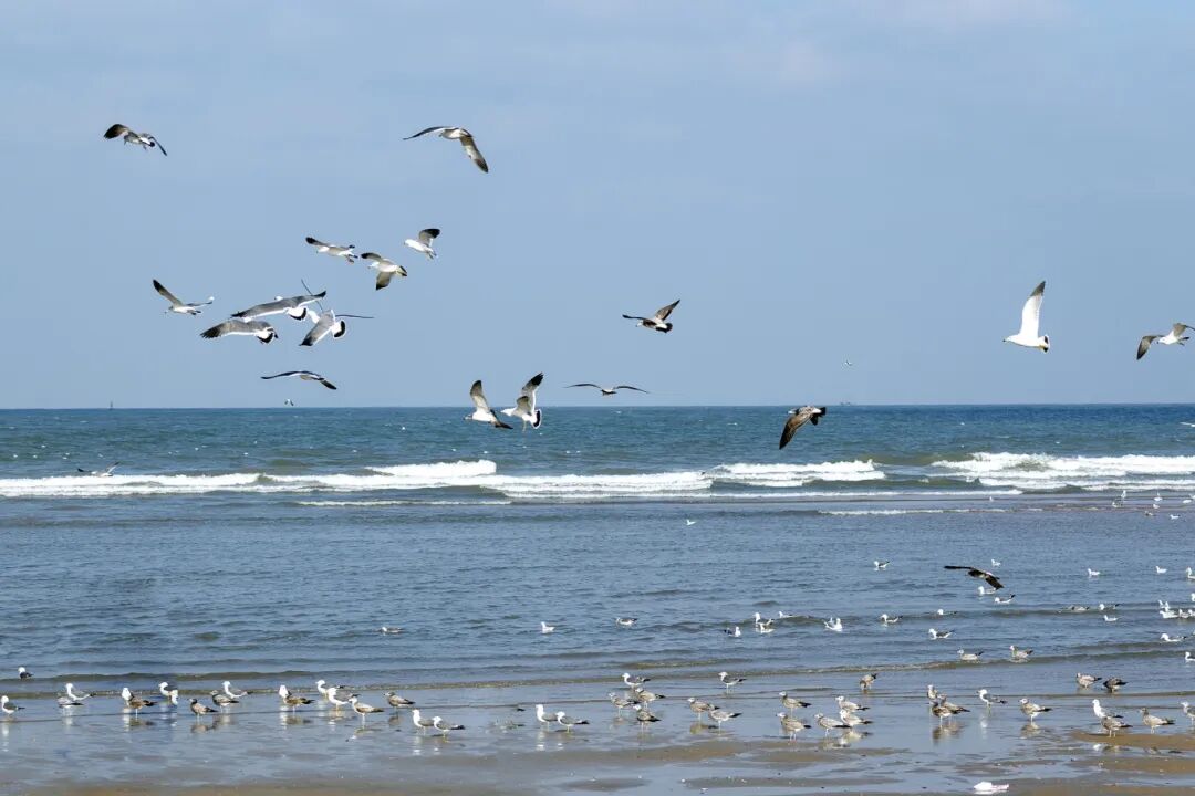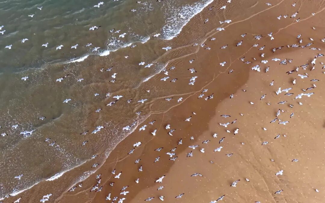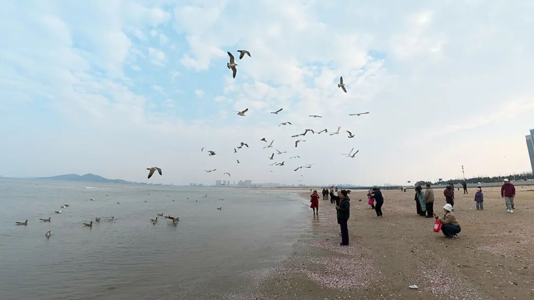 沙滩上,不少市民游客向海鸥投喂面包、火腿肠等食物,成群海鸥应声而来,在空中盘旋抢食,场面蔚为壮观。“近年来,市民生态保护意识显著提升,市民对鸟类愈发友好,不驱赶、不惊吓的行为,也让海鸥逐渐放下戒备,与人类近距离相处。”专家说,大家与鸟亲近的热情,也从侧面反映出全社会鸟类保护意识的提升。