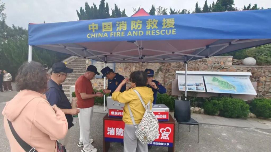 比如,在景区入口、在出租车上、在渔家乐里,大队打造的“千屿蓝盾”志愿服务品牌,将消防站、服务站变成游客的安心驿站。