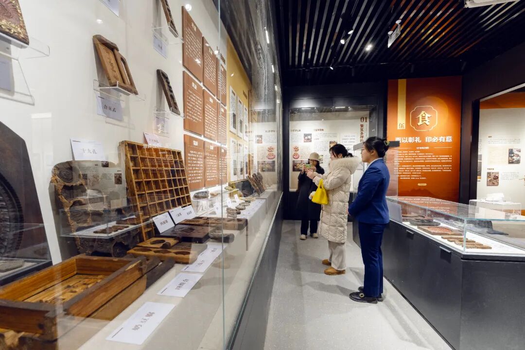 在胶东特色面食文化展区,一排排造型古朴、纹样精致的胶东饽饽榼子,吸引了观众目光。这些榼子形制多样,大小不一,上面的花纹栩栩如生,牡丹富贵饱满,鲤鱼灵动鲜活,寿桃圆润讨喜,祥云纹样连绵缠绕,一刀一刻间尽显手艺人的精湛功力。“这和小时候家里用的榼子一模一样,看到就想起了过年蒸饽饽的热闹劲儿。”一位观众忍不住感慨。还有年轻游客好奇地询问榼子的使用方法,围着展区的讲解员问个不停,浓浓的民俗气息让整个展区洋溢着热闹又亲切的氛围。