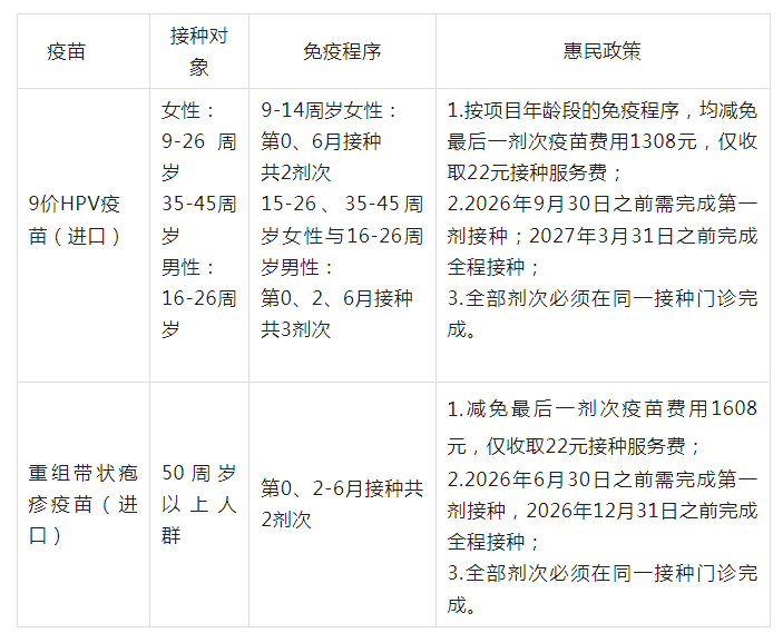 为深入贯彻落实《“健康中国2030”规划纲要》《加速消除宫颈癌行动计划(2023-2030年)》等相关政策,进一步提升全民健康防护水平,烟台市持续推进疫苗惠民项目,对已开展的HPV疫苗和带状疱疹疫苗接种惠民项目进行调整,详情如下: