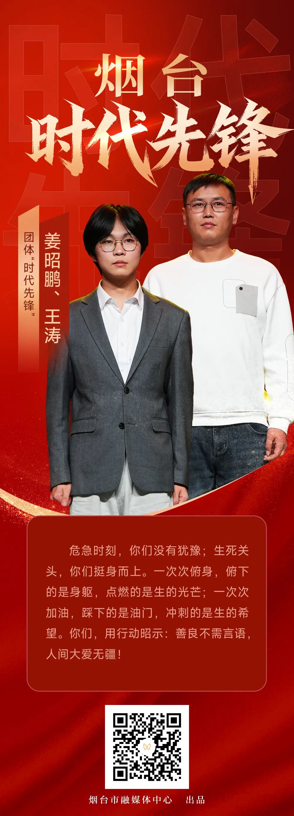 12月26日下午,由中共烟台市委宣传部主办、烟台市融媒体中心承办的“烟台时代先锋”发布仪式举行,市委宣传部授予刘杨、张葆春、姜昭鹏与王涛、长岛海洋生态文明综合试验区消防救援大队“烟台时代先锋”称号。