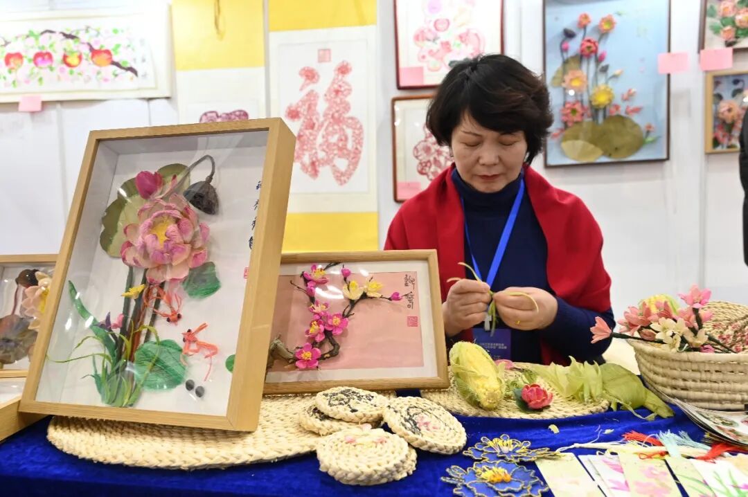 素有“抽纱瑰宝”之称的栖霞棒槌花边技艺也备受青睐。艺人邹汉珍在展会上收获了一份特别的订单——顾客希望她用羊绒羊毛线编织披肩。“这让我非常开心,”邹汉珍说,“接下来我会努力让更多人了解并喜欢这门技艺,在传承中创新,在创新中发展。”草编艺人于志红则用栖霞当地的玉米皮“变废为宝”,制作出精美的草编画,同样获得了不少订单。“我会继续传承这门非遗文化,让更多融入栖霞元素的作品,赢得大家的喜爱。”于志红表示。