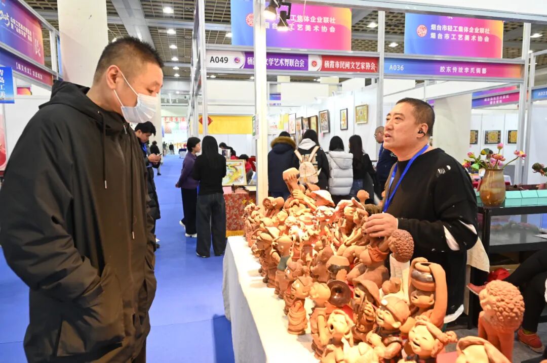 本届博览会以“弘扬齐鲁传统文化、打造鲁派技艺风格”为主题,聚焦创新、消费、民生与乡村振兴。栖霞市精选了面塑、草编、剪纸、糖画、棒槌花边、泥塑等门类的代表性作品参展。这些作品在承袭古法精髓的同时,巧妙融入现代审美与生活元素,吸引了众多参观者驻足欣赏、洽谈。
