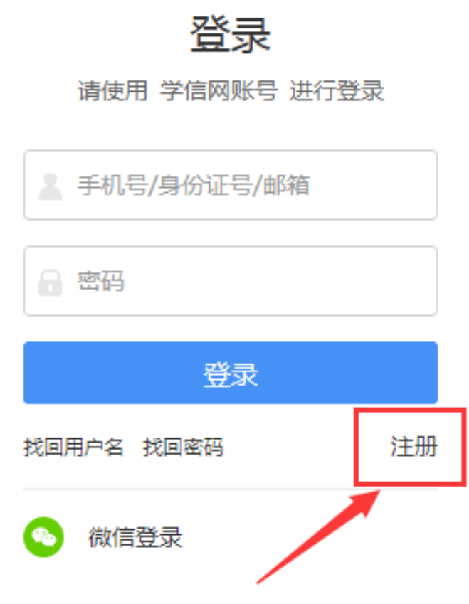 未注册过“学信网”的,点击“注册”: