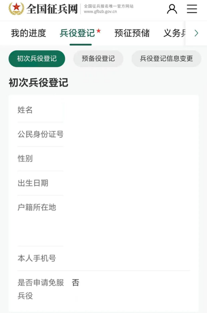 点击“初次兵役登记”: